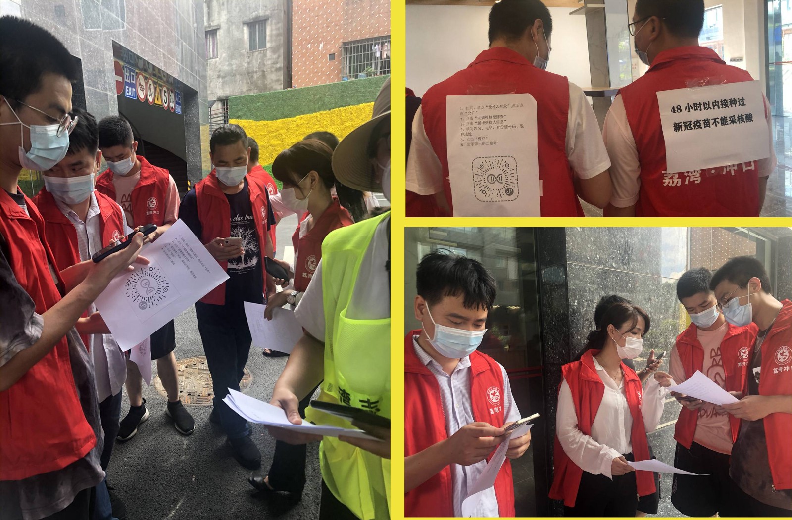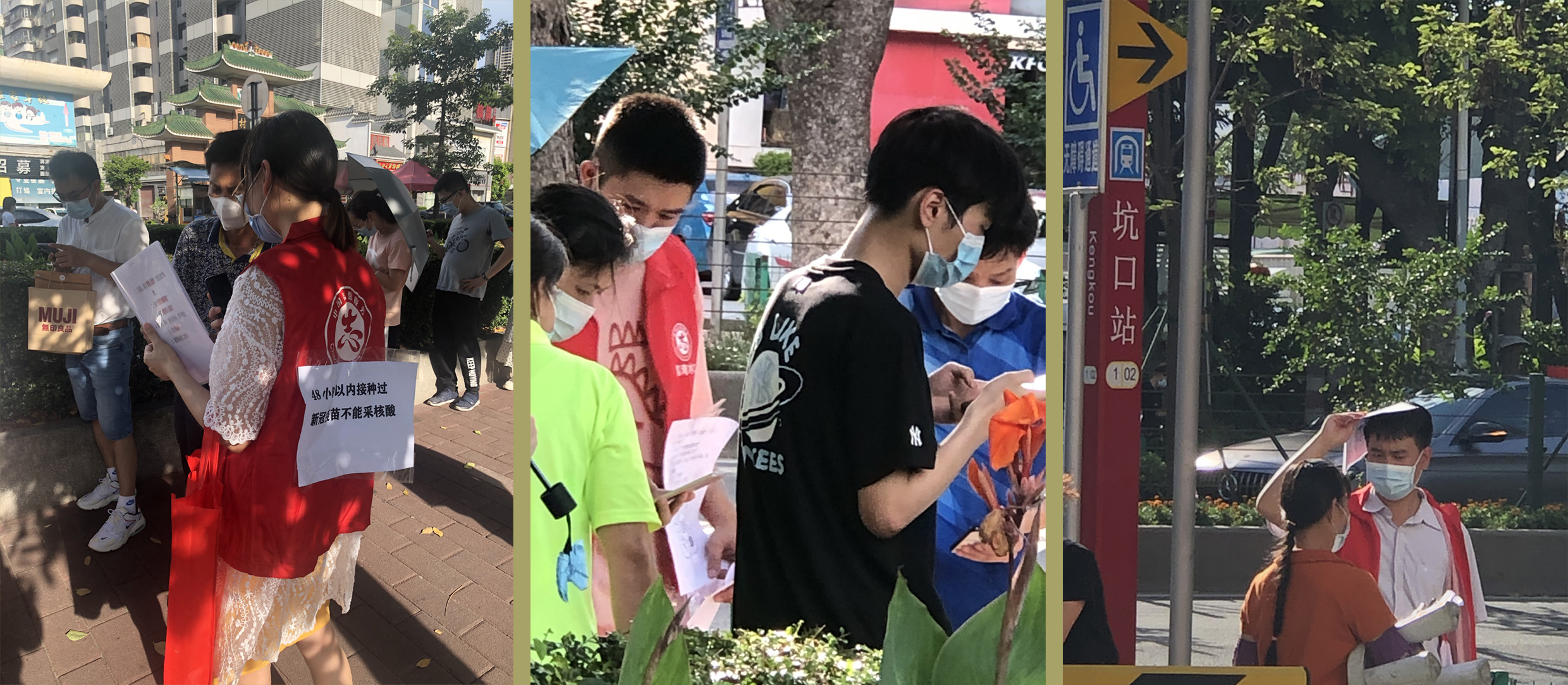 政和的志愿者們在烈日下講解核酸檢測流程和維持秩序