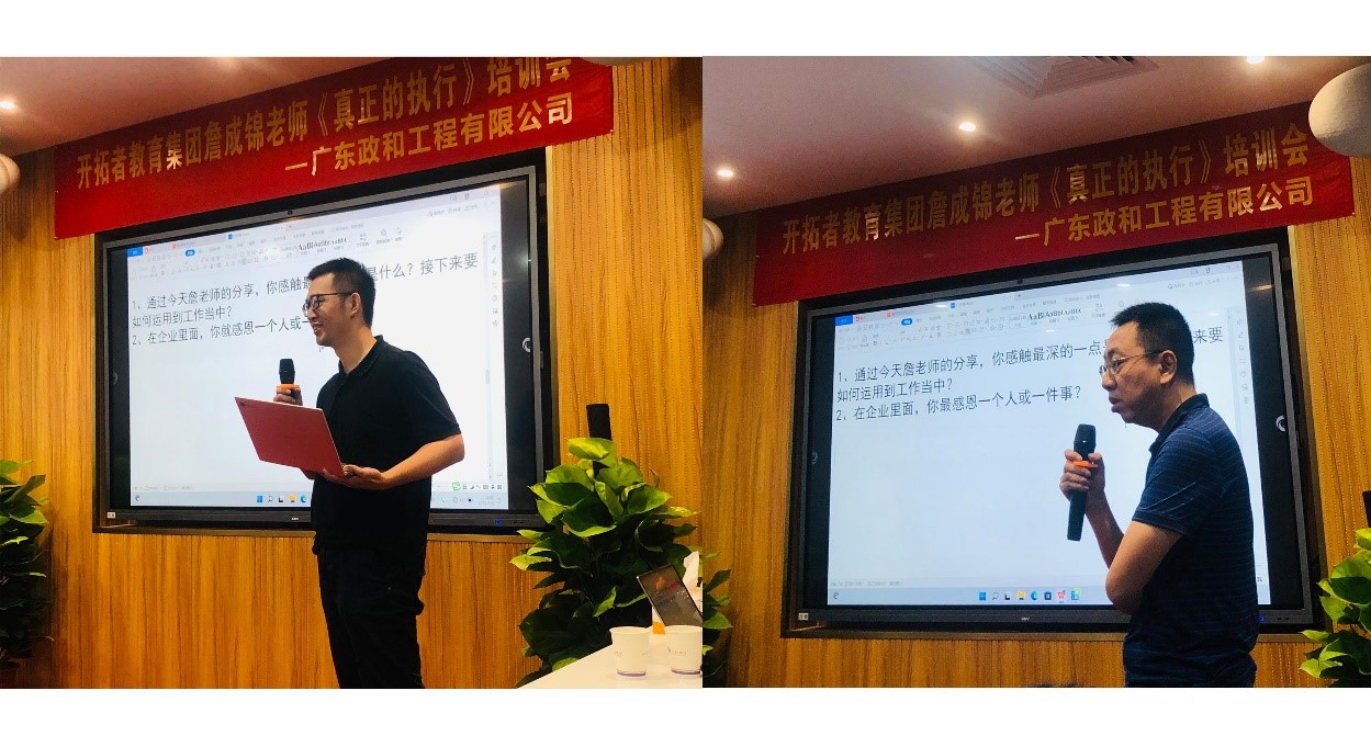 2022年8月5日上午9:00,政和公司邀請了中國企業人才教育領域馳名品牌——開拓者教育集團資深專家詹成錦老師親臨現場,向公司管理層和部分骨干員工現場傳授《真正的執行》。