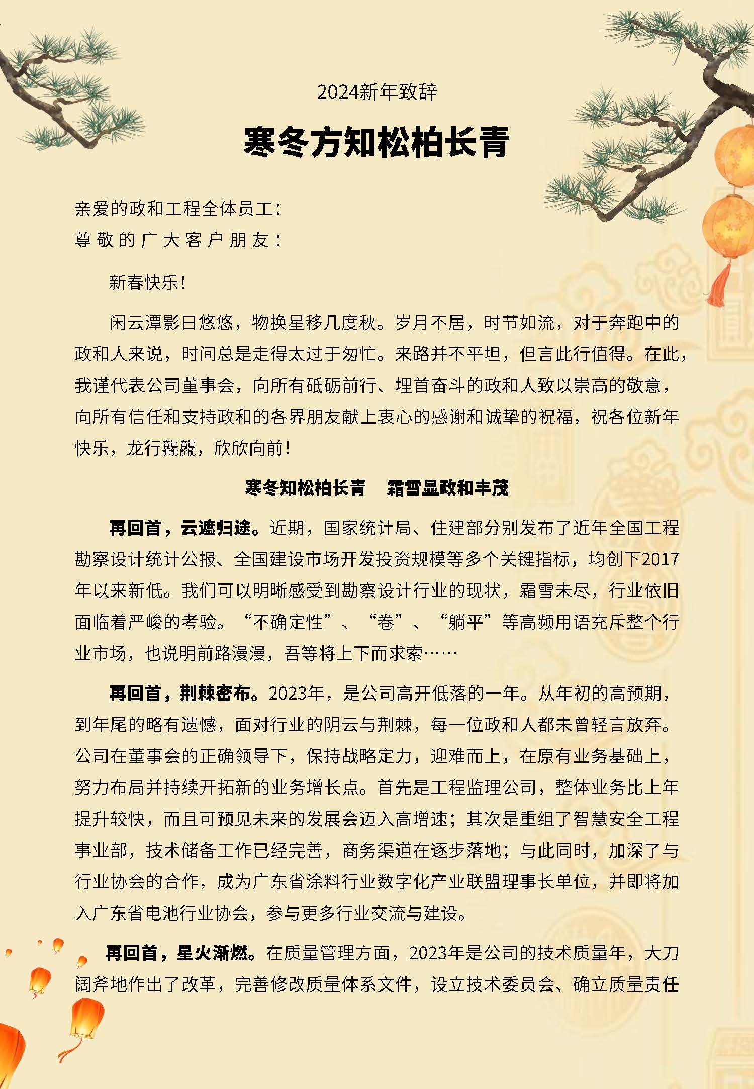 2024新年致辭---寒冬方知松柏長青