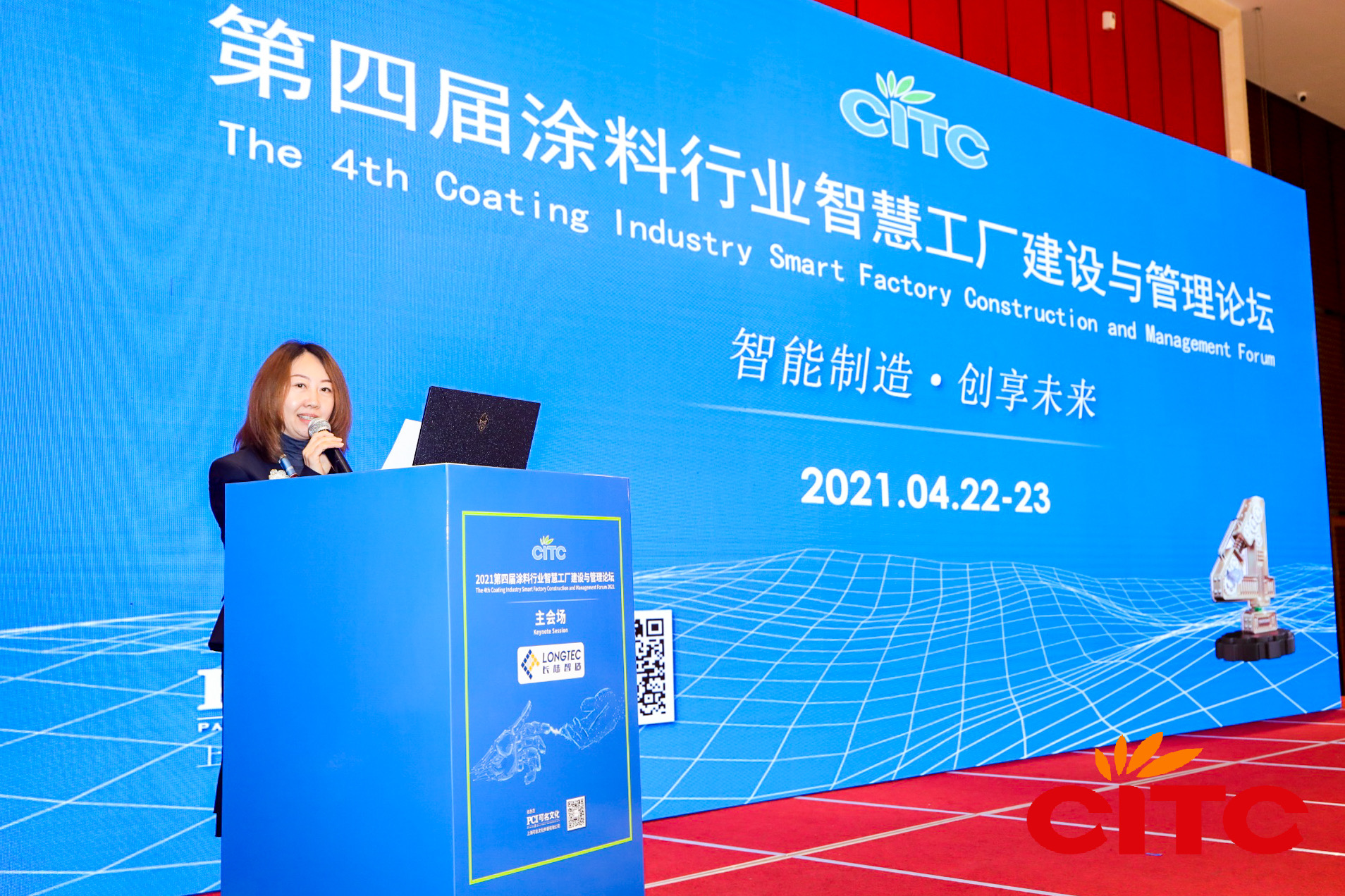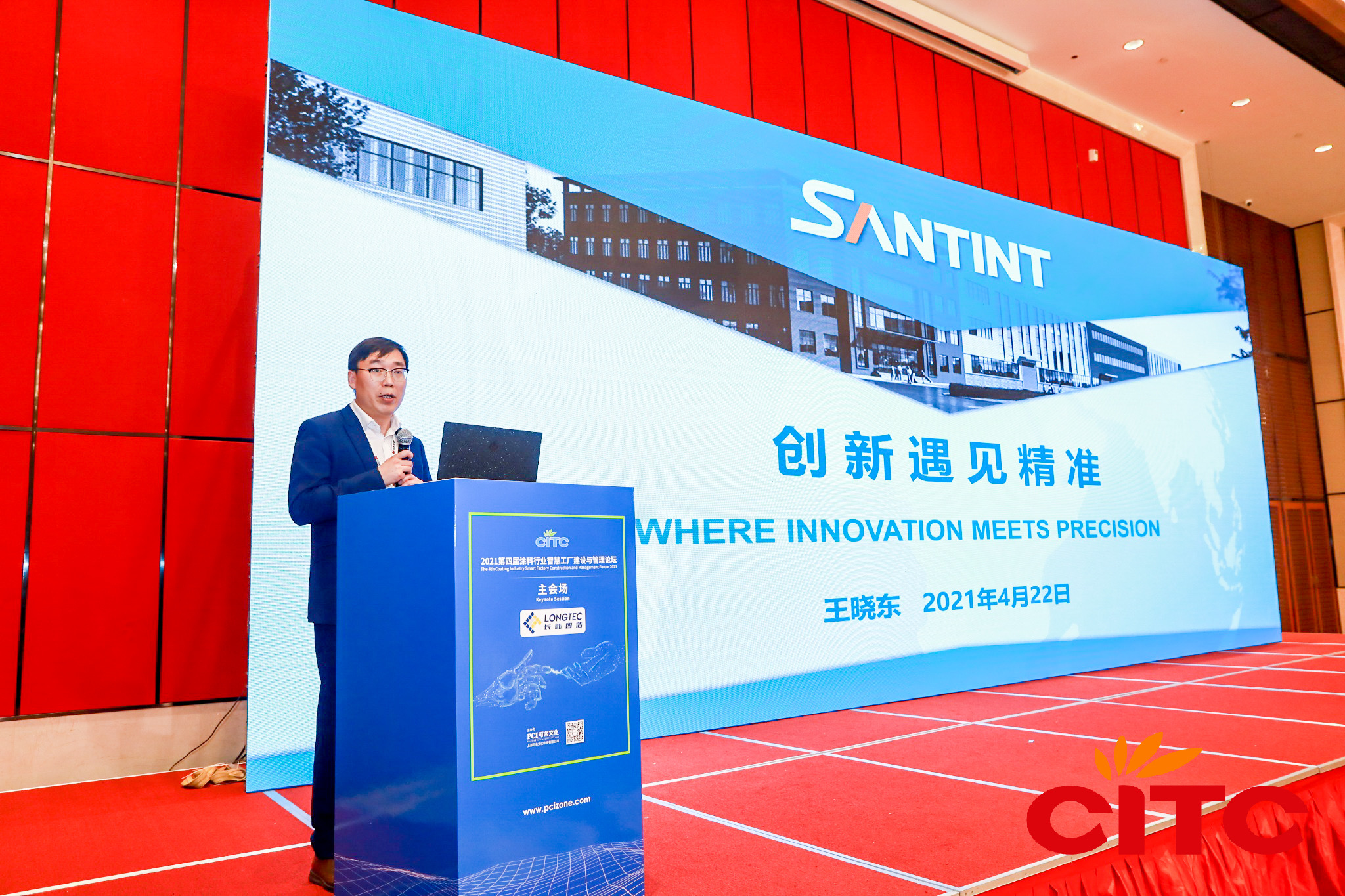2021年4月22-23日,CITC第四屆涂料行業智慧工廠建設與管理論壇在安徽滁州凱迪溫德姆至尊豪廷大酒店圓滿成功。本屆論壇吸引了來自PPG、立邦、三棵樹、嘉寶莉、亞士創能、萬安、亮克威澤、湛新、漢高等在智慧工廠的建設和運營方面有豐富經驗的知名大廠以及政和工程、長陸智造、三華科技、法孚萊、龍鑫機械、京華兆建、英美科、米多、箱箱共用、諾輝智能、派勒、儒佳、通惠裝備、淳然環境、貝斯柯、湯姆森、琥崧智能、惟德智能、卓奧、濾威、道專、法登、皓謙智能裝備、洪大集團等近三十家智造設備優秀廠商,共計400多位嘉賓參與。